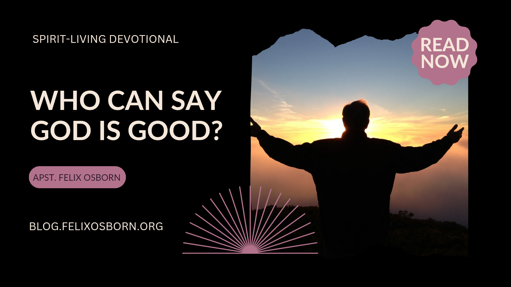 Spirit-Living Devotional Apostle Osborn WHO CAN SAY GOD IS GOOD? [[Nah 1:7]] KJV The LORD…